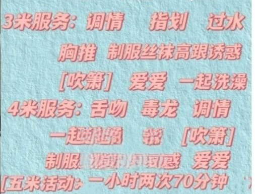 1.服务不错 人很温柔 2.口很不错差点给我搞射了 3.但是呢 时间要提前预约 很难约上 4.胸真的很大 ...